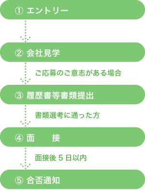 エントリー頂いた後、1度会社見学にお越し頂きます。